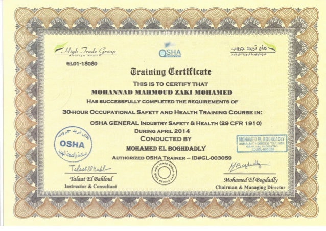 Osha Training Certificate Template. Sign Up; Log In; Print a Free Training Certificate of Completion. Professional Certificate in Safety and Health - Construction and General Industry;. In the matter that you glance around, you'll statement that everything is marked. From a tiny container to a big office accomplishment area, all single business will undoubtedly have at any rate one mark. Naming things is valuable, easy and functional, and the applications are basically interminable. You can locate a broad assortment of names accessible available, in various shapes and sizes, styles, plans, hues, materials, template, etc.